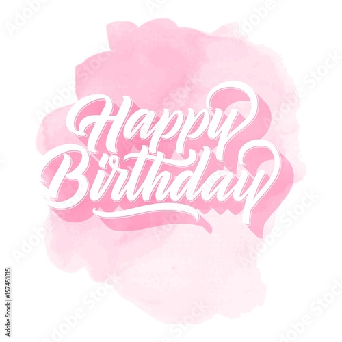 Happy Birthday Hand Lettering On Watercolor Background With Stock Photo Picture And Royalty Free Image Image 69205177