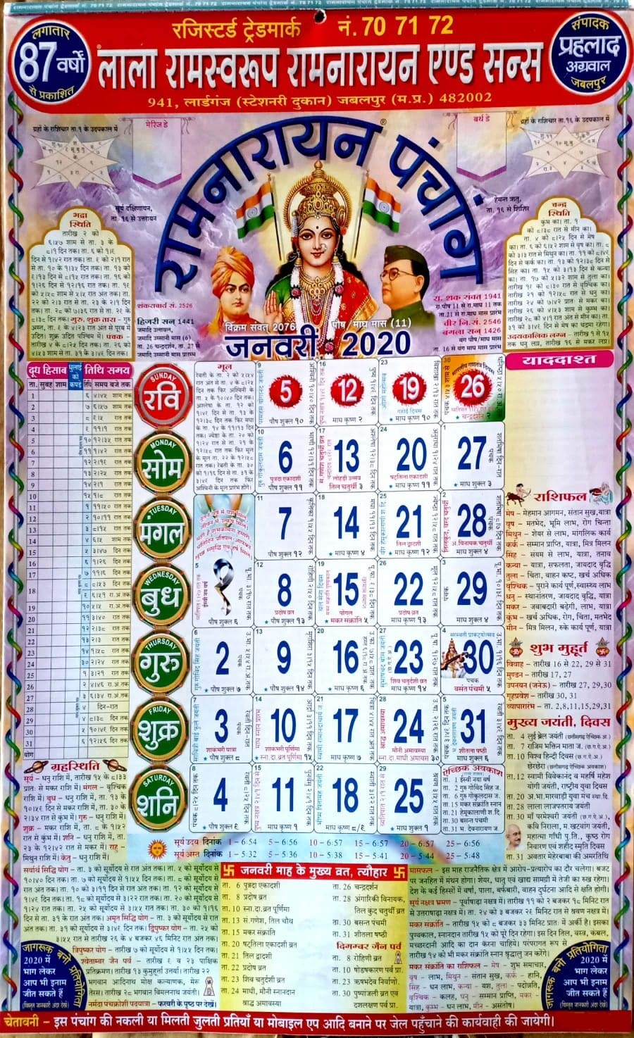 Thakur Prasad Calendar 2019 2020 Jitendra Motiyani Thakur Prasad Calendar Panchang Calendar Calendar 2020