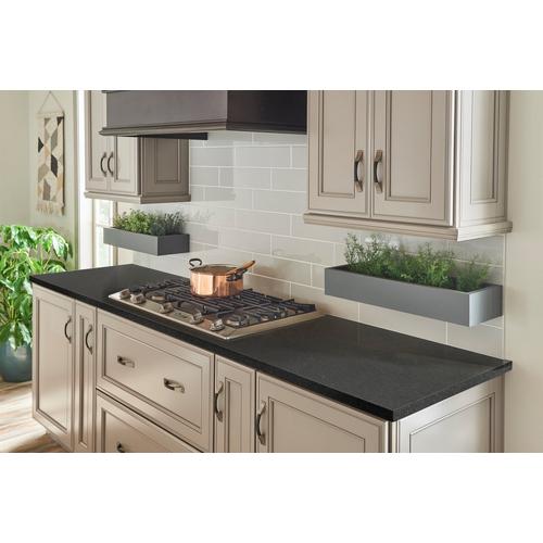 It pairs well with a white or gray cabinet. I think its going to work best with the simple clean lines of our kitchen and the adjoining family room. Scroll down to see more.