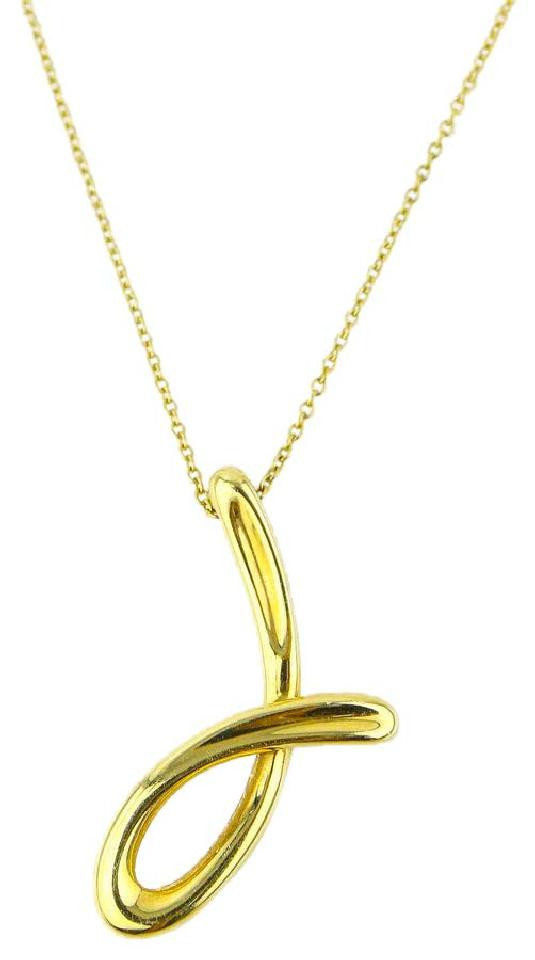 Tiffany Co Elsa Peretti Letter J Alphabet Charm 18k Gold Necklace Leprix