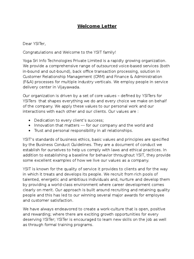 9 Welcome Letter Samples Writing Letters Formats Examples