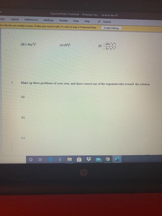 Solved Exponent Rules Worksheet Protected Viewsaved To Th Chegg Com